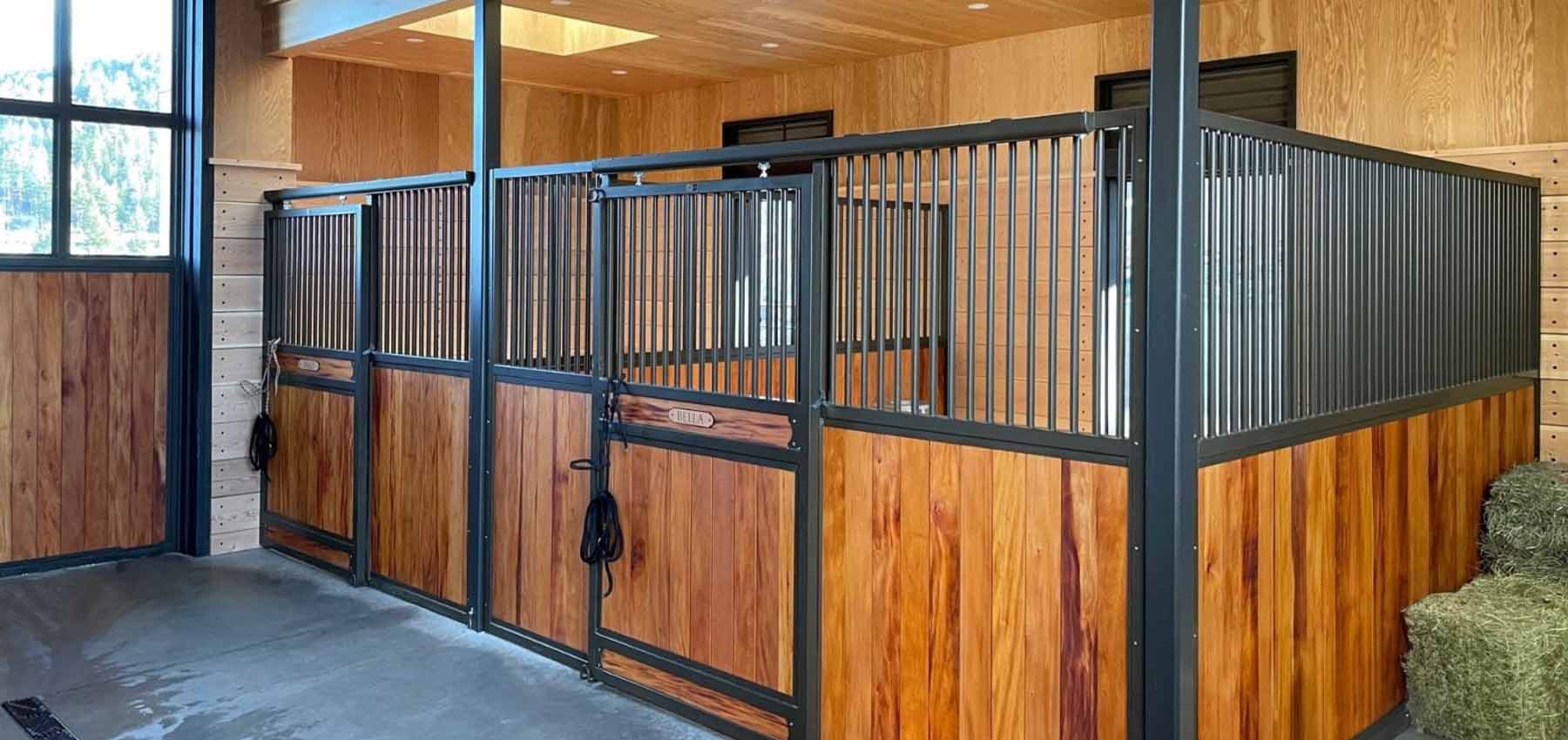 Cool air from the Rocky Mountains descends into the Front Range. The modern design and efficient layout of Carlson Barn creates a horse barn that is bright, airy, and safe for horses and people. Classic sliding-door stall fronts maintain open aisle space, while the stall partitions allow for horses to socialize safely.